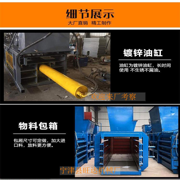 液压系统:液压泵、电磁阀和液压缸油封等关键部件使用进口配件,使得打包压力大、速度快、经久耐用、噪音小。