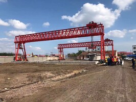 架桥机主要是架设桥梁用,吊运混凝土梁到的位置,用来调整方向,是靠四个支柱来完成支撑的。架桥机在公路架桥过程中,主要作用是把预制好的梁片运输到桥墩上。而龙门吊则是把梁片从地面上提起来交给运梁车,再由运梁车把梁片运输到架桥机下面。两者是相互配合工作的。
