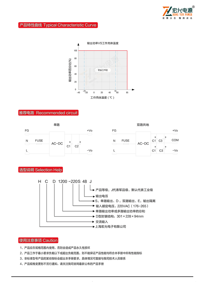 上海宏允AC-DC模块电源2000W220V转500V高压输出电源模块典型性能: