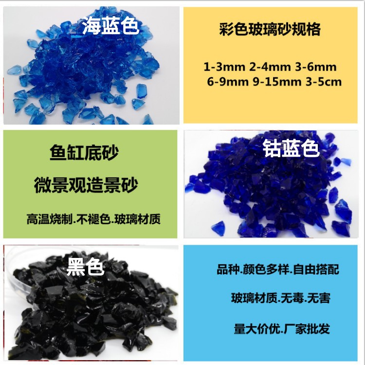 厂家供应各规格 彩砂玻璃砂 鱼缸装饰用 海蓝色玻璃砂颗粒