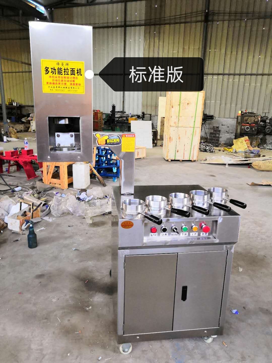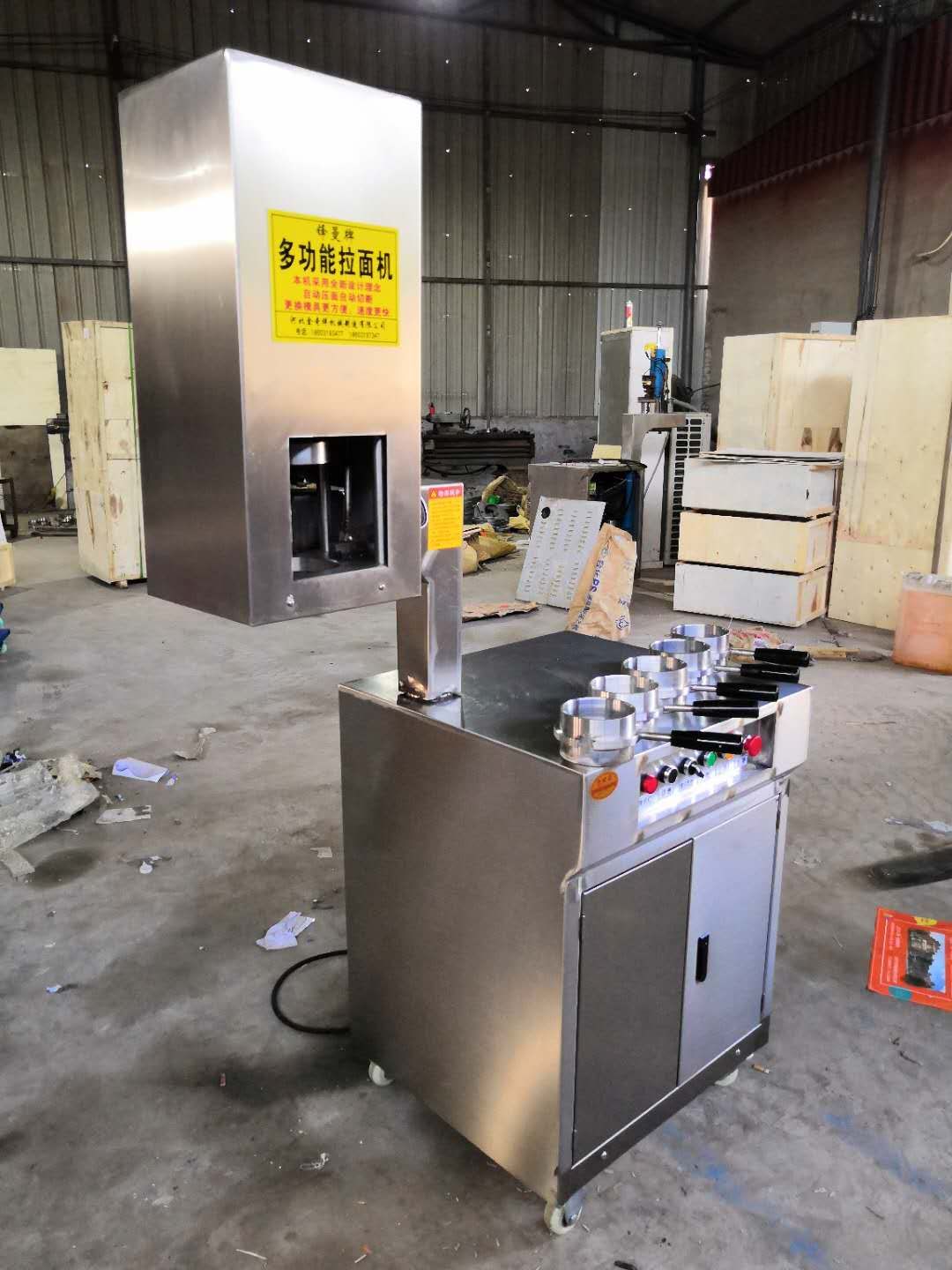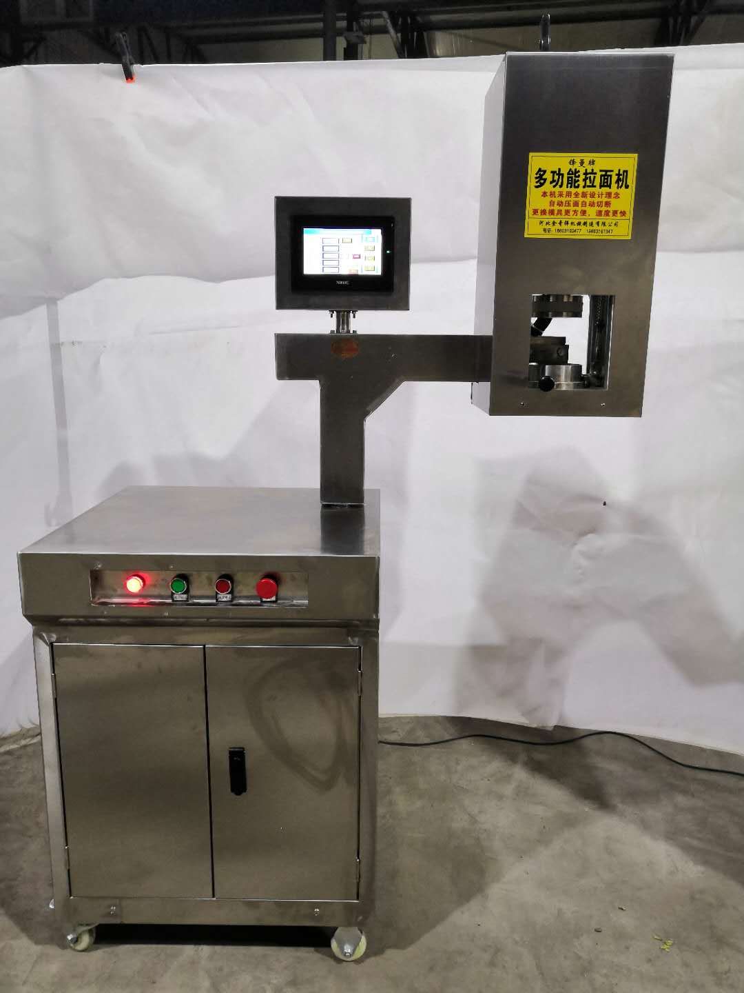自动拉面机参考手工擀制面条的情况,在和面的时候用水量都比较多,大概为面粉分量的45%。当面粉经过加水拌和、揉搓、搋(chuāi)动等步骤后,面粉中的淀粉与蛋白质就会大程度地吸收水分。淀粉吸收水分后就会产生黏性,而蛋白质吸收水分后就会变成面筋,两者结合在一起就是做面的面团了。这种面团,用手工搋搓的时间越长就越有利于形成面筋网络和增加黏性,这为手擀面条良好的口感提供了为基础的条件。
