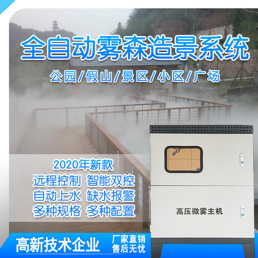 通过高压装置设备,对泵站的高压出口处压力表进行调拨定位,控制调节出水压力,从而达到雾森系统所需要的水源压力标准,雾森效果,该装置功能,集监控、管理、保护为一体,自动化程度高、性能比高、可靠性高。