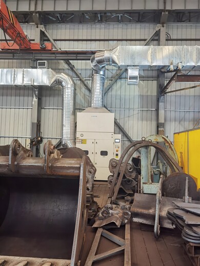 车间焊接吹吸式除尘器主机里安放的滤芯数量是提前根据整个车间的工位数量推算的烟尘量决定的,所需总有效过滤面积除以单个滤芯过滤面积,即可得到需要滤芯数量。