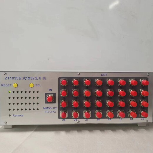 概述 WG3033 是一款机械式 1x32 光开关设备,集成了时序控制电路和通信接口,具备 操作按钮和 LED 指示灯,便于操控。该设备工作于单模 1270~1650nm 或多模 850nm 窗 口,插入损耗低,功能稳定可靠,重复性高。除了具备手动操作功能外,该仪表还具 有 USB 和 LAN 接口,可由 PC 发送指令完成所有操作和控制,便于和其他测试仪器一 起构成自动化测控系统。特别适合企业、工厂和研究单位测量实验等。