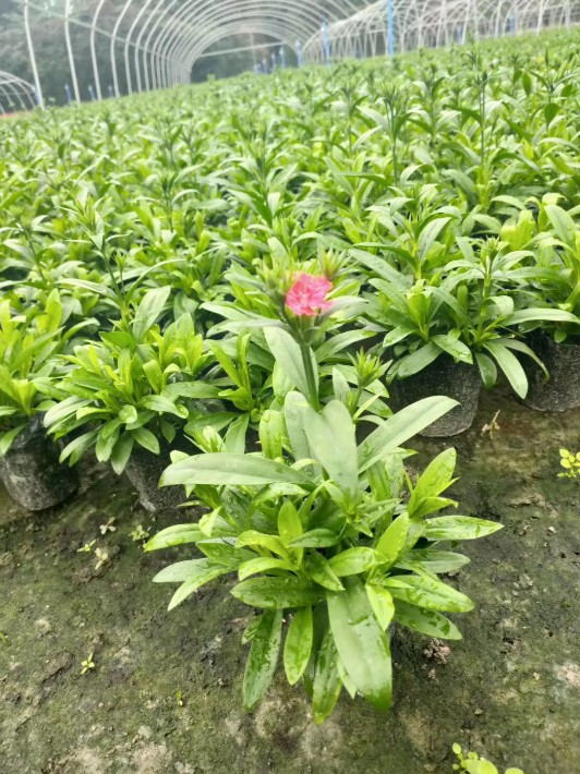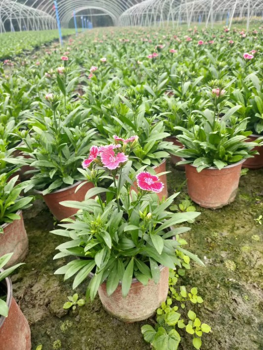 石竹株型低矮,茎秆似竹,叶丛青翠,自然花期5~9月,从暮春季节可开至仲秋,温室盆栽可以花开四季。花顶生枝端,单生或成对,也有呈圆锥状聚伞花序;花径不大,仅2至3厘米,但花朵繁茂,此起彼伏,观赏期较长。花色有白、粉、红、粉红、大红、紫、淡紫、黄、蓝等,五彩缤纷。园林中可用于花坛、花境、花台或盆栽,也可用于草坪边缘点缀。大面积成片栽植时可作景观地被材料,另外石竹有吸收二氧化硫和氯气的本领,凡有毒气的地方可以多种。切花观赏亦佳。