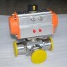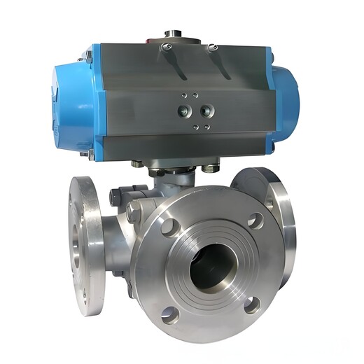 本公司的气动三通球阀是一种三通道的回转型球阀, 用于介质分流、合流及流向切换,每个管道都可以作为入口或出口。气动三通球阀分有气动三通L型球阀和气动三通T型球阀两种,可以达到不同的生产工艺要求。气动三通L型球阀是对三条管道中的两条管道进行切断,气动三通T型球阀实现把三条连通管道进行合流与分流。气动三通球阀与电气阀门定位器配套,输入4~20mADC信号及0.4~0.7MPa气源就可控制运转,实现对压力、流量、温度、液位等参数的调节。亦配行程限位开关、电磁阀、减压阀及0.4-0.7MPa气源可实现开关操作,并送出二对无源触点信号指示阀门的开关。气动三通球阀主要应用于化工,石油,轻纺,电力,食品,制冷,航空,航天,造纸等工业领域。