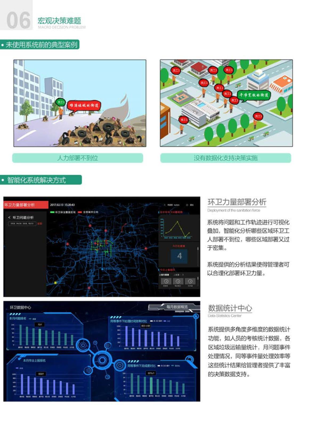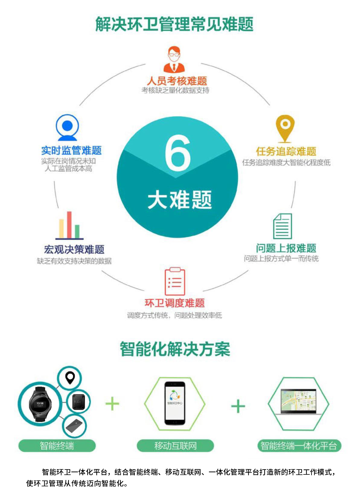 智能环卫一体化平台解决方案,结合智能终端、移动互联网、一体化管理平台打造新的环卫工作模式,使环卫管理从传统迈向智能化。