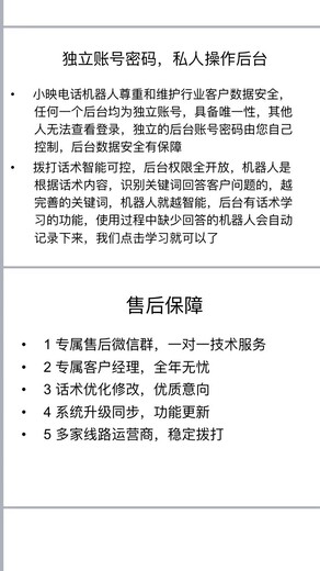 操作也比较简单,有话术后,技术会开通一个后台,您再后台上传客户号码,充值话费,机器人自动拨打完后都会分类ABCD意向客户,到时拨打完,查看拨打记录(有意向的客户也可以推送到自己的上,随时查看跟进),有(录音和文字)到时跟进有意向的客户就可以了