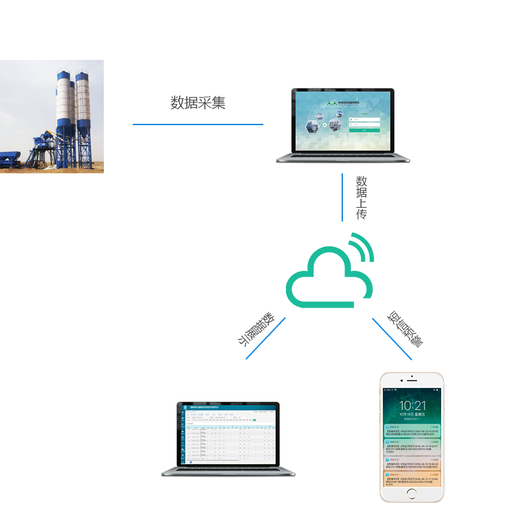 水稳拌合站质量监测系统对拌合站控制中心加装立计算功能的数据采集模块,支持断点续传,数据完整传输。其网络传输支持联通、移动、电信三大运营商网络,保障数据能及时传输,在遇到超标信息时,能迅速通过短信或系统内部进行告警提示,让相关管理人员能够及时进行整改。