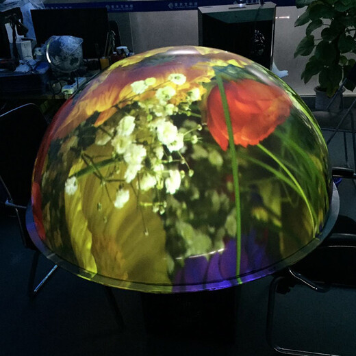无缝定制内投影半球幕是利用光学镜头,经过特殊的计算机视觉技术和球形显示技术,将平面成像转换为球形显示。