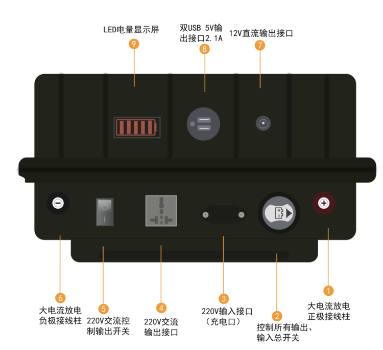 汽车、卡车在发动机启动时需要由汽车自带的蓄电池提供 12 伏电压,当车的蓄电池无法使用时,汽车就无法启动,此时就可以用应急电源代替汽车自带的蓄电池,发动汽车。