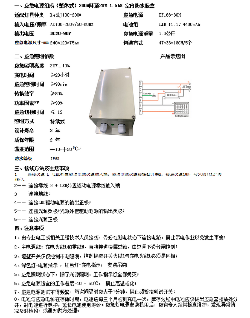 登峰DF防水应急电源LED照明应急装置分为室内防水户外防水等方案。可定制。功率3-200W时间超3小时以上。IP65防水证书。多规格全自动高功率数字化led应急电源,LED应急灯,面板灯应急电源,LED应急装置,防水移动电源,便携应急电源,数字化LED应急电源,集成一体化应急电源,日光灯应急电源等各种照明应急电源,命LED应急灯等LED应急灯、应急电源、物联网消防出口标志灯、应急指示灯、储能型太阳能路灯、智能充电系统、太阳能光伏设备、储能电源、5G机站电池、通讯蓄电池以及环保型储能蓄电池等。