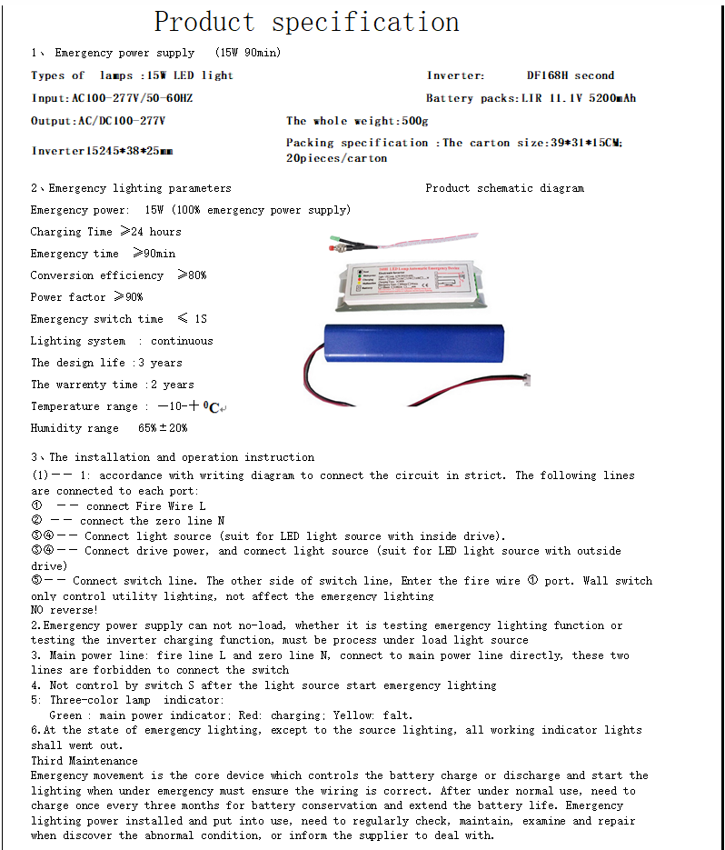 DF牌led日光灯照明应急电源18W90分钟符合消防照明新适用于8-25W,比如LED灯管,一体工矿灯隧道灯。既然有电、停电,全部是驱动电源在点亮灯具,那么,有电、停电,它们的照明功率是相同的。全功率输出的照明应急电源,工作原理可以简单理解为:停电了,电池通过逆变器再把市电给变回来 ,它连接在照明驱动电源的前面,适合用于驱动电源在灯内无法取出来接线的灯具,比如LED灯管,一体工矿灯隧道灯。既然有电、停电,全部是驱动电源在点亮灯具,那么,有电、停电,它们的照明功率是相同的