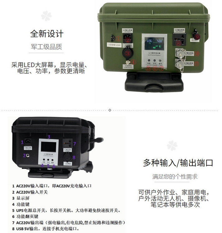 6应用广泛:石油化工、航空航海、电力核电、通讯医疗、野外训练、各种户外考察、野营、探险及广播电台外出采访等各领域的各精密设备提供供电保障。