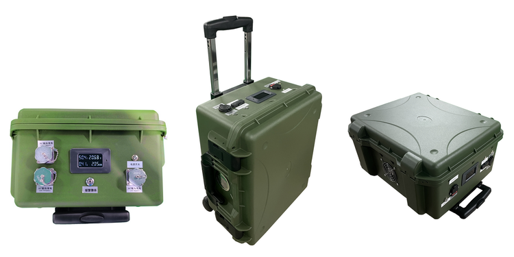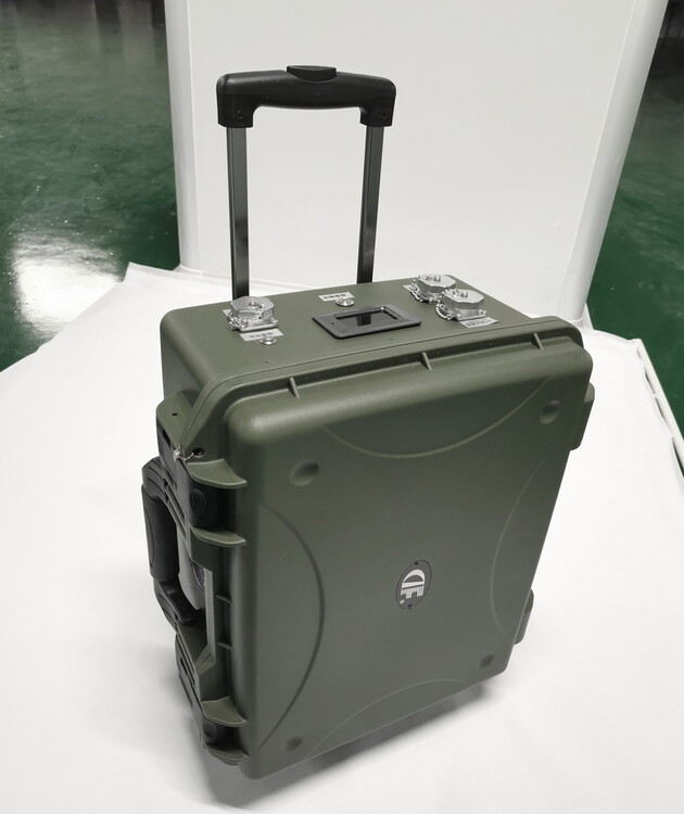 AC220V便携车载拉杆箱式1280Wh-10KW移动UPS不间断电源,便携移动拉杆箱户外ups备用储能电源,ABS外箱防水航空接插件,暗夜绿外箱及黑色外箱任选,功率段300-6000W可选。拉杆箱便携式,大功率采用四轮拖拉箱并能够定制实现并机让功率倍增,磷酸铁锂电池绿色环保命,寿命超五年。16年应急电源工厂研发团队品质保障。