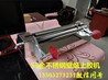 5、将壁纸放于两端支架,拉出壁纸,使其紧贴滚筒,放下压纸辊,压住壁纸,转动摇把,使壁纸平头与裁纸外平齐。