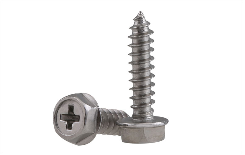 304不锈钢十字外六角自攻螺丝尖尾尖头自攻钉木螺丝带垫自攻M3-M6