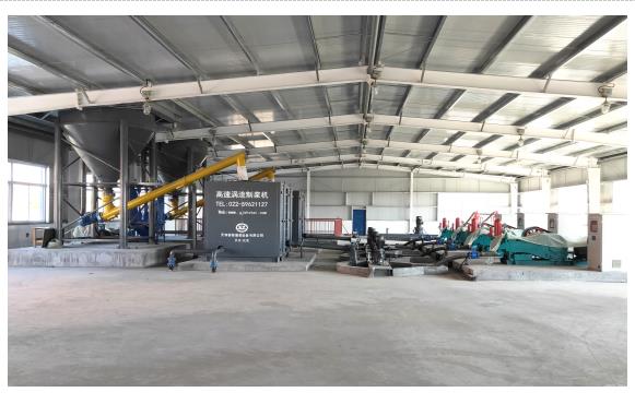 包括储料设备、自动上料设备、搅拌设备、搅拌池和配电柜;所述配电柜的电流输出端分别与所述自动上料设备的电流输入端和所述搅拌设备的电流输入端电连接;所述自动上料设备的进料口与所述储料设备的出料口连通,所述自动上料设备的出料口与所述搅拌池的进料口连通,所述搅拌设备的搅拌杆位于所述搅拌池内。