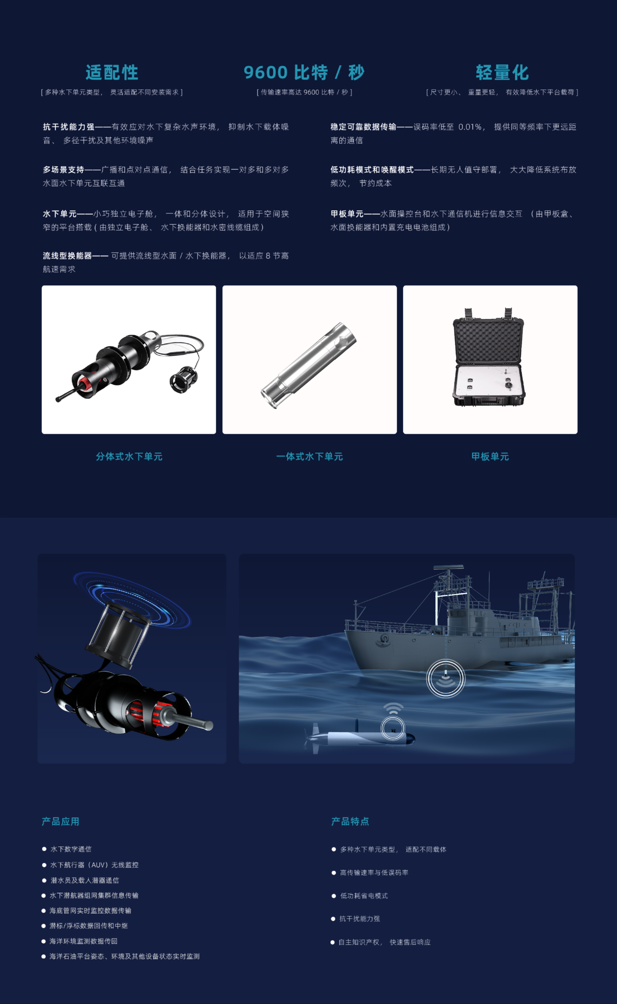 水下潜航器组网群信息传输,海底管网实时监控数据传输,潜标浮标数据回传和中继,
