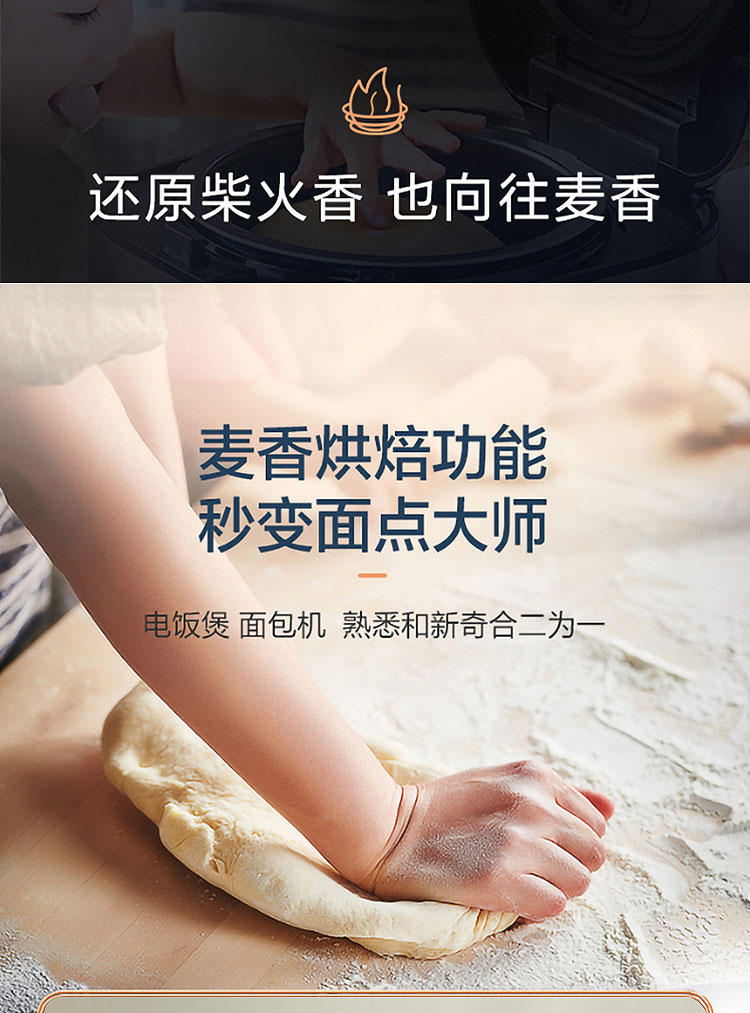 » 时尚款家用电饭煲不粘铝胆煲大屏触控智能煮三维立体加热方煲