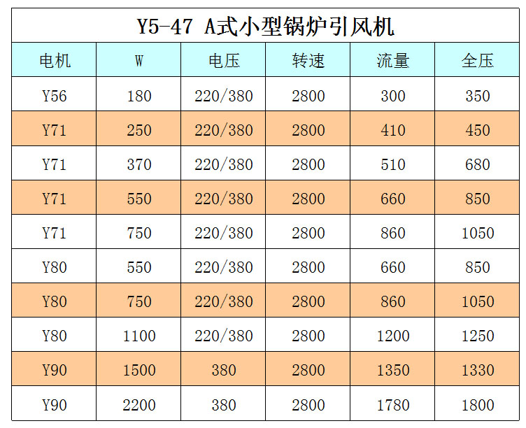 Y5-47锅炉离心引风机由叶轮、机壳、进风口、传动组和调节门等部分组成。叶轮有12片材料为16Mn的后倾平板叶片、焊接于弧锥形轮盖与平板形的轮盘中间,经动平衡校正,运转平稳,有较高的强度和耐磨性,使用寿命较长。