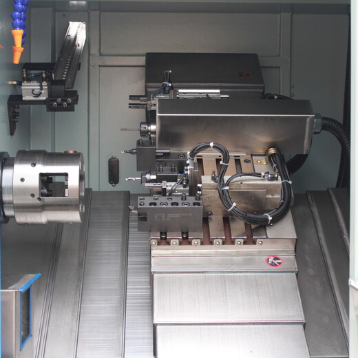 本机床是一款集车、铣、钻、攻丝、雕刻等的多功能设备,能进行端面和侧面的铣、钻、攻丝等复合加工;特别适合形状复杂,加工工序多,精度要求高的零件加工,可在一次装夹中完成全部或大部分工序加工,节省换刀步骤及缩短换刀空跑时间,加工,节省成本。