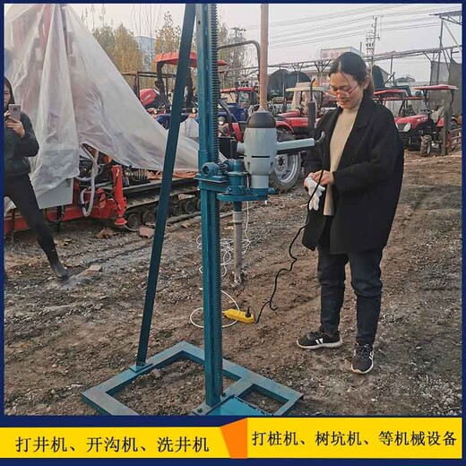 采用两相电,可以手扶式,也可以安装在架子上面,钻杆根据打井深度和口径来悬着。扩孔6-20公分,可以打40-10米.使用方便,自动上下退卸杆。