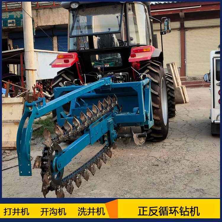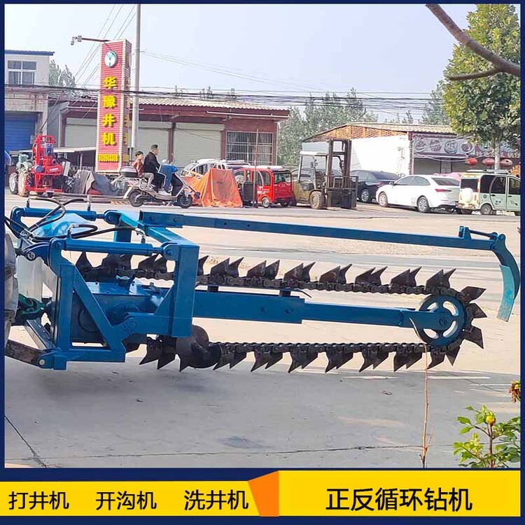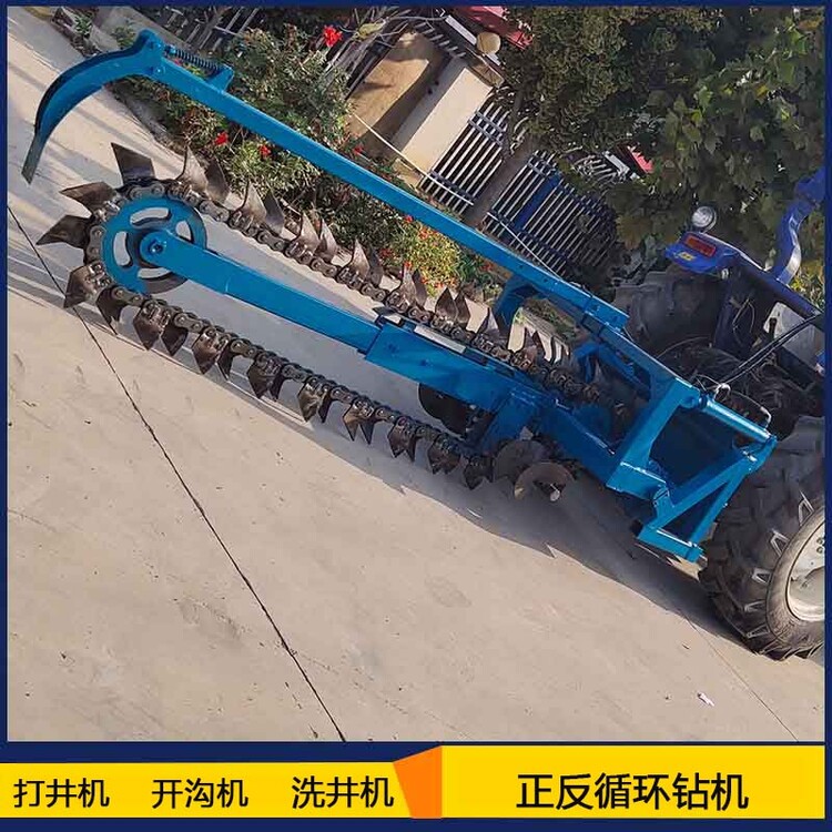 该设备为链条开沟机用于开挖各种管道使用,该设备选用的是40A的大链条,安装在拖拉机上拉着就可以走了,非常的方便,开挖的宽度深度支持定做。