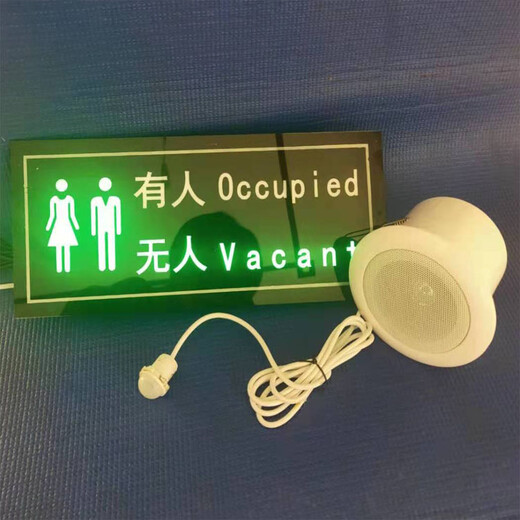 动触发磁感应开关,显示屏显示红色为有人,否则显示绿色为无人,中英文“有人、无人”,LED红绿双色显示,安装简单,使用方便,受众人群广,本品主要针对户外/半户外立大卫生间设计。