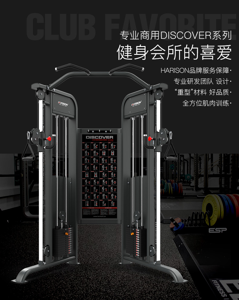 » 美国汉臣HARISON综合训练器小飞鸟多功能综合训练机扩夹胸训练商用运健身器材商用健身房器材DISCOVER109