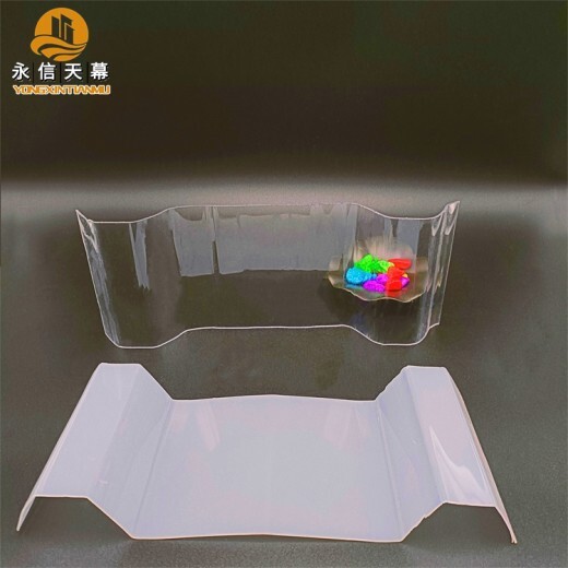 PC采光瓦,具有质轻耐砸,挡紫外线,采光效果好的优点,而且在防火阻燃隔热性方面表现也不错,PC波浪瓦耐候性方面也很广泛,可耐高温125度,耐低温-40度,使用寿命比较长,进口聚碳酸酯原料采光瓦可用10年以上,但pc采光瓦有一个不足那就是PC材质不耐强酸碱。