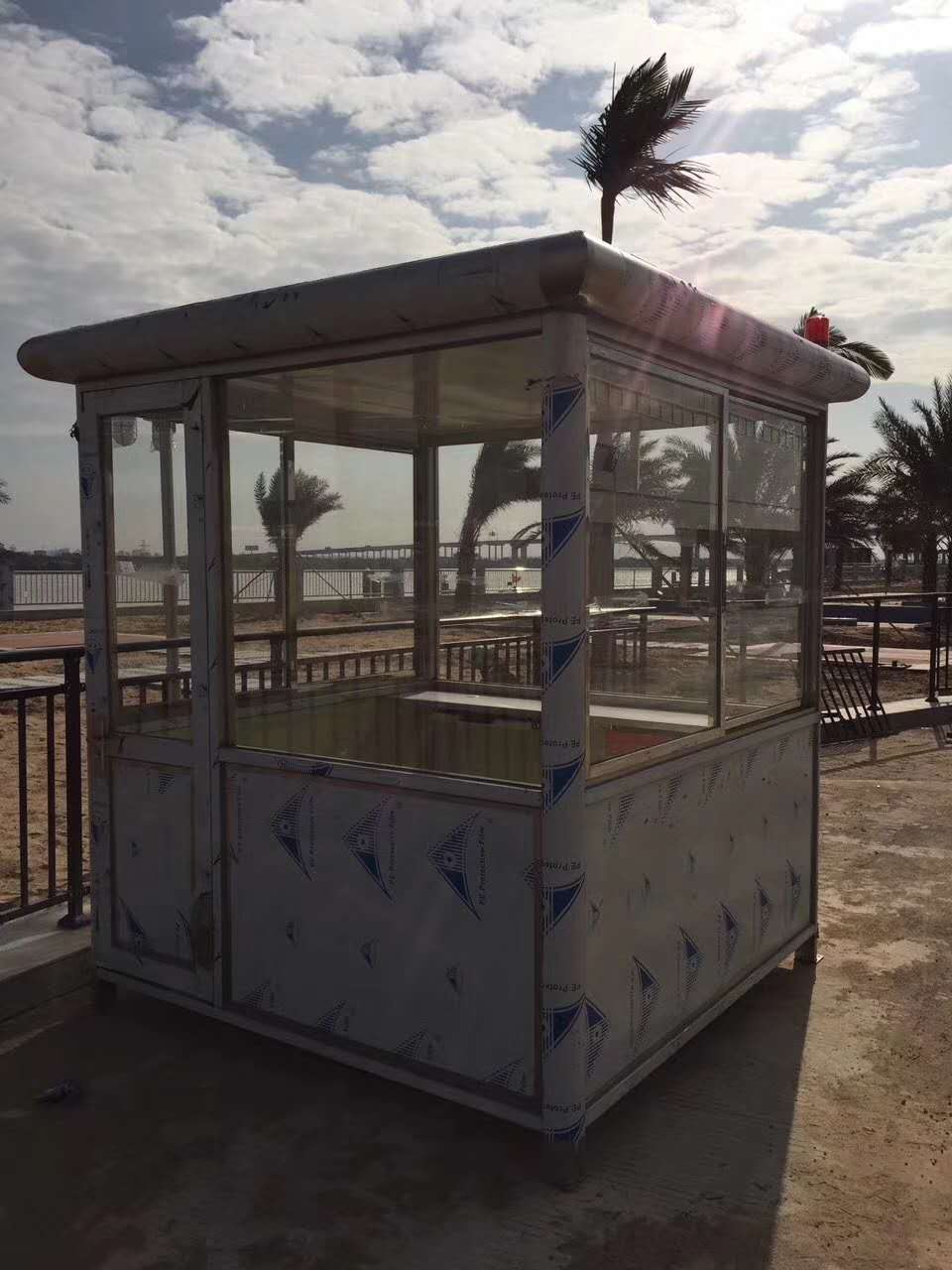 1. 彩钢岗亭: 岗亭支撑柱采用Φ160、1/4铝合金型材