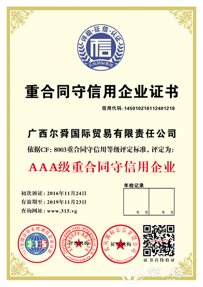 全面的公示和宣传.使参加评级企业一夜之间家户喻晓.快速提高受评企业的度和信誉度.其性和度在国内具有无可比拟的优势.2.我公司将不定期选择信用级别较高的企业经理和高层主管.委托媒体采访和宣传.让诚信工作深入人心.3.信用等级证书.包括港.澳.台.欧洲等国际社会的认可.可在企业宣传时使用.4.从事外贸企业在申请信用评级享有的地位. 5.可在其他需要展示.证明企业信用等级时使用.6.企业获得较高的信用证书.更容易取信客户.7.信用证书在315全国企业信用信息网公示.具有良好的社会宣传力度和度.8.参加企业享有18位数字信用代码.该代码全国**编码.是企业**信用级别方面的查询代码.他真实的记录着企业的信用情况.