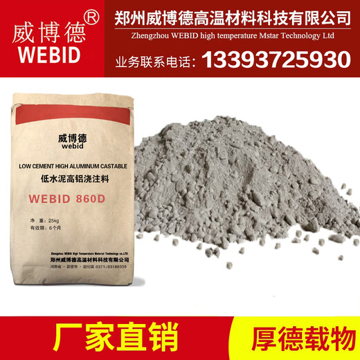 WEBID 860D是一种矾土基低水泥浇注料,具有较好的强度和整体性及较好的性价比,设计用于中小型熔铝炉炉顶、烟道等部位。