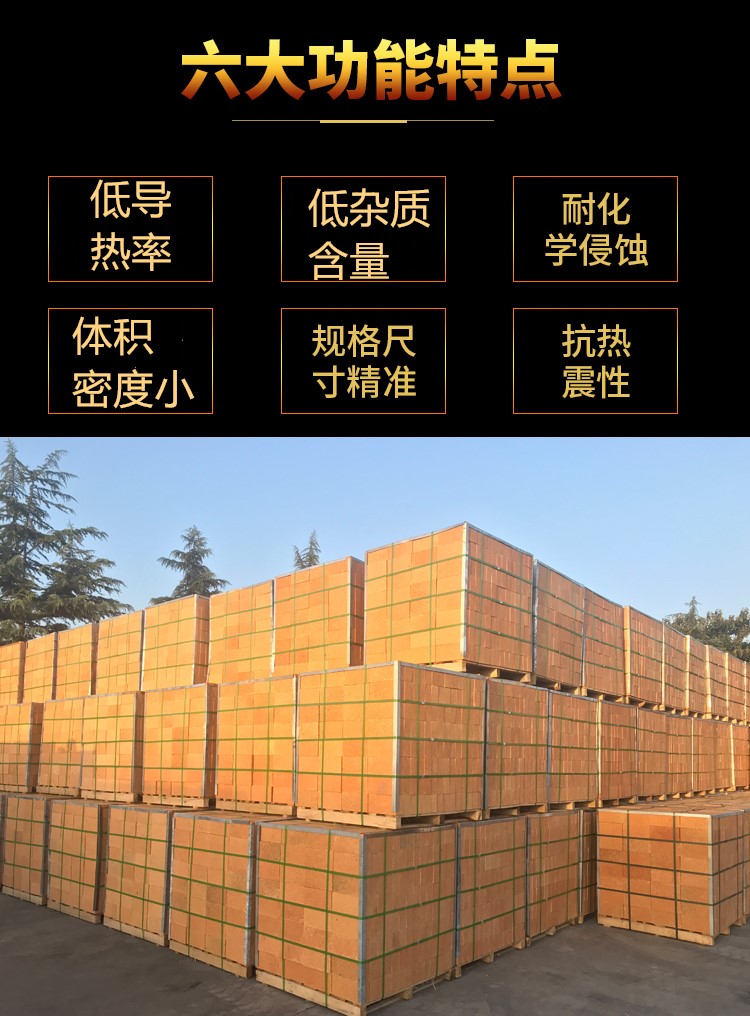 低导热率、低杂质含量、耐化学腐蚀、体积密度小、规格尺寸、抗热震性