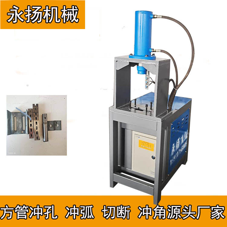 (4)管材液压冲孔机在不锈钢、铝合金五金卫浴、彩钢、锌钢护栏冲孔中应用非常广泛,是目前管材,方管打孔加工快的设备。