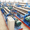 产品特点:该机为对称式三辊卷板机,两下辊为主动固定辊,上辊通过升降丝杆、涡轮、蜗杆在两下辊对称中央作上下移动,两下辊的左、右旋转和上辊的升降移动均靠电机带动减速器来完成,并能借助手动离合器把上辊调节成平行或倾斜位置,以适应卷制圆形和锥形工件的需要,涡轮上下配有特种压力轴承,转动轻松、省电耐磨。该机集机身、传动、电器部分为一整体,其结构紧凑、操作方便、便于搬运、安装和维护。