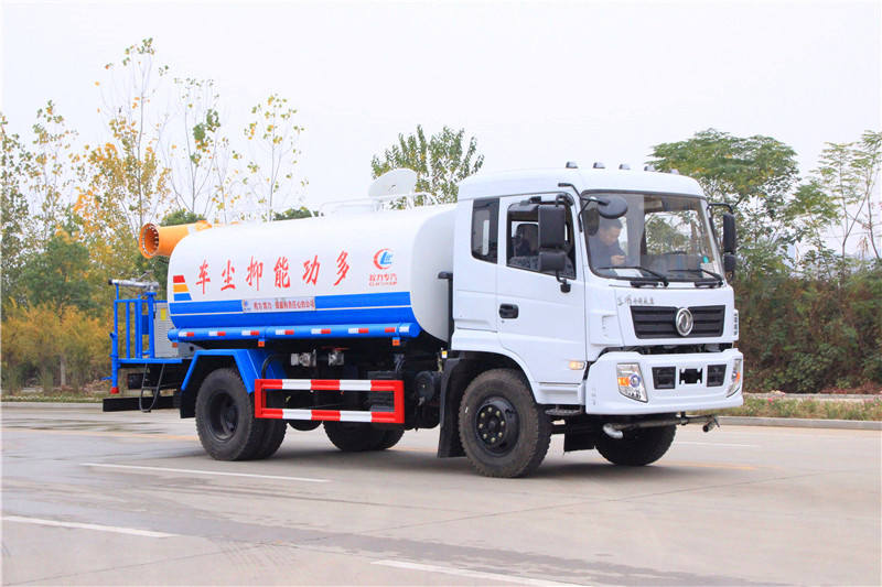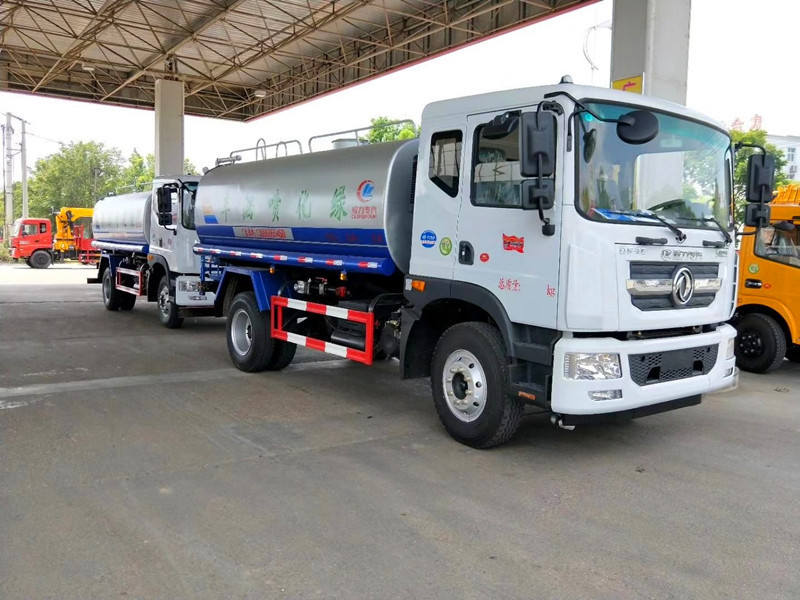 罐体采用武钢4mm碳钢板一次卷压成型,完全做到无缝成型。配备洒水泵,前喷后洒、侧喷、后工作平台及洒水高压炮。洒水泵自吸高度为6米,出水量为60立方米/小时,整车洒水宽度大于14米,后工作平台水炮直冲射程28米左右(可调成:直冲状、大雨、中雨、小雨、毛毛雨),整车带消防接头、自流阀及自吸功能。附送2根3米水管,1个爬梯,两侧及后保险杠。