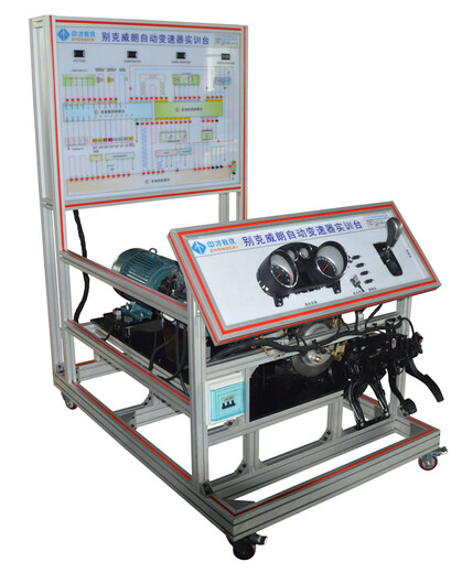 (1)实训台测量面板上绘有彩色喷绘电路图,采用8mm厚度的度亚克力板材喷绘而成,具有耐较大温差,耐磨,防潮,防腐蚀,不易变形,使用寿命长,色彩亮丽,不易褪色等特点。(2)实训台操作面板上安装有汽车仪表,可实时显示发动机转速、输出轴车速等参数变化。安装有诊断座,可连接或通用型汽车解码器,对变速器电控系统进行读取故障码、清除故障码、读取数据流等自诊断功能。配备有换挡机构,可方便进行档位操纵。(3)实训台面板上安装有检测端子、可直接在面板上检测各传感器、执行器、变速器控制单元管脚的电信号,如电阻、电压、电流、频率信号等。(4)实训台采用国际标准铝合金型材搭建而成,具有质量轻、强度高、耐腐蚀、寿命长等特点,无需经过喷涂工艺,更加环保,外观更显美观,台架带自锁脚轮装置,移动灵活,安全可靠、坚固。