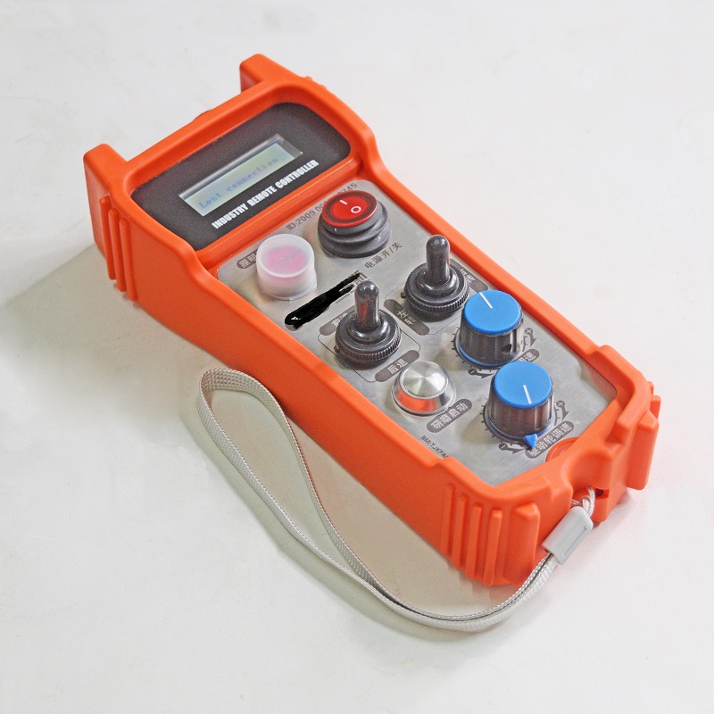该型号产品为2路模拟量和8路开关量地坪研磨机无线遥控器,可控制研磨启动,前进/后退,左转/右转,模拟量控制研磨无极调速以及驱动轮调速,可控制照明开/关;