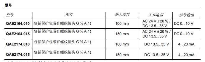 西门子浸入式温度传感器QAE2164/QAE2174用于测量、控制、限制水的温度