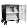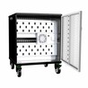 1、★二层式黑色+白色经典搭配,每层20工位白色ABS隔位设计,前后门为带锁单开门,前门为设备存放区域,后门为电源管控区域;外形尺寸≤612*700*538 (mm含脚轮防撞),工位容积306*220*25 (mm)