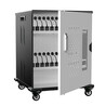 1、★二层式黑色+白色经典搭配,每层12工位白色ABS隔位设计,前后门为带锁单开门,前门为设备存放区域,后门为电源管控区域;外形尺寸≤604*789*634(mm含脚轮防撞),工位容积413*245/307*36 (mm)