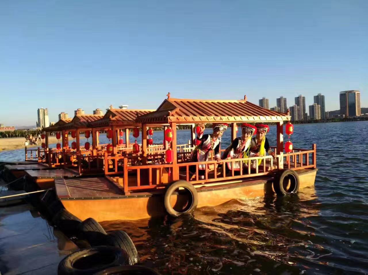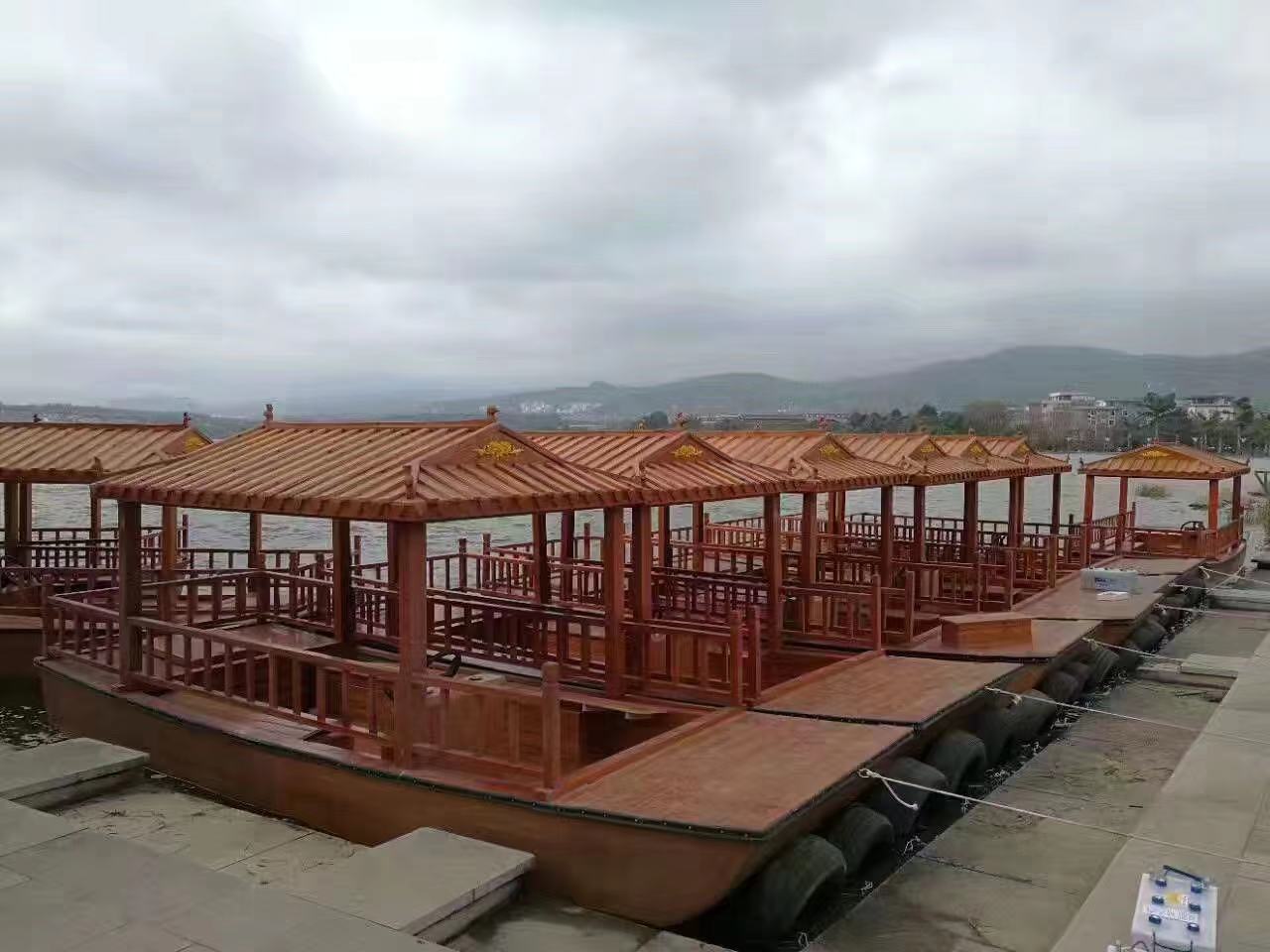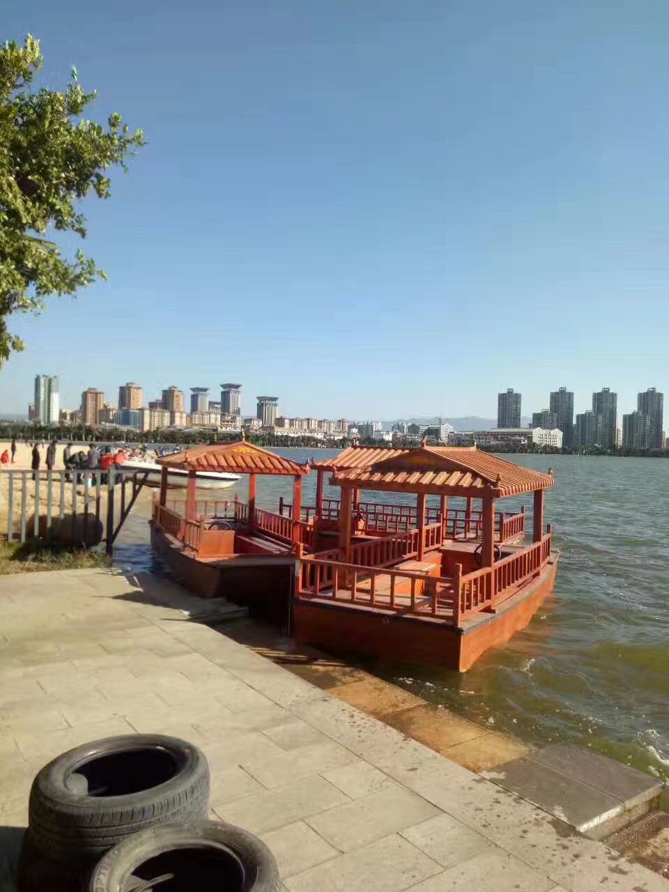 木船画舫船小型实木质仿古电动船公园景区水上餐饮手划观光旅游船