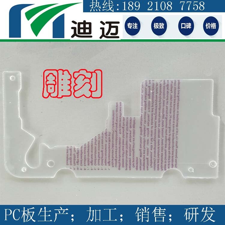 常州PC板视窗加工迪迈PC板雕刻折弯按图制作以进口PC板为基材,依据客户提供图纸或产品来样进行雕刻。公司引进大型CNC雕刻机械,其度可控制在0.07mm,可1300mm*2500mm规格内板材进行各种形状的雕刻切割,各种平面方孔、圆孔及多角度孔洞,满足客户对面板,罩壳,视窗等方各种加工技术要求。
