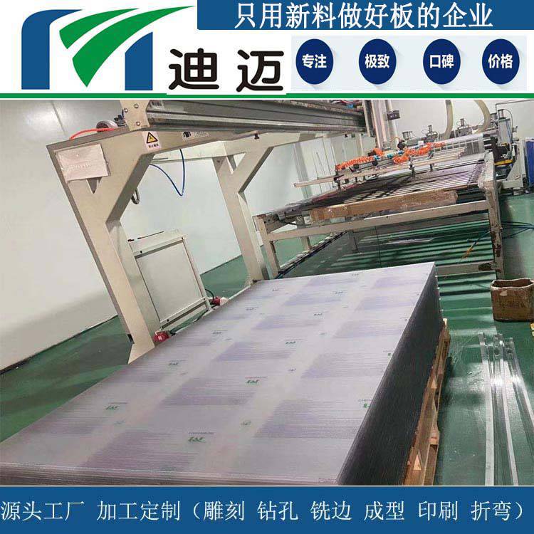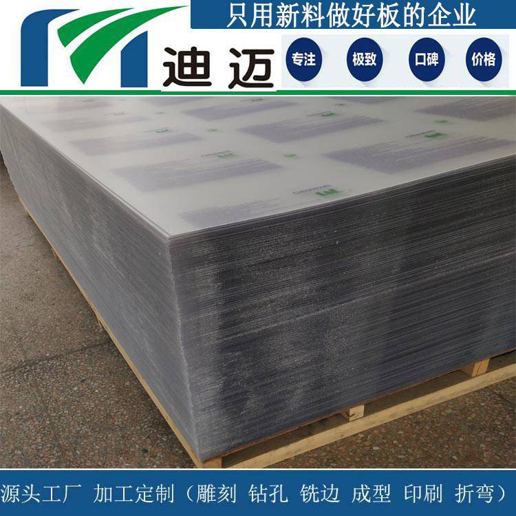 deminePC板厂家耐力板-江苏迪迈新材料有限公司是集PC塑胶板材生产和成型加工于一体的公司。公司引进国际双面VU共挤生产流水线,采用德国拜耳(BAYER)和美国通用(SABIC)的PC原料。经过全体员工的共同努力,公司正以低成本生产大宽幅的pc耐力板,供应给广大顾客。同时引进多台的加工设备,并以的加工工艺和丰富的加工经验致力于PC板的二次成型加工。根据客户的设计图纸及要求,进行精度切割,雕刻钻孔,CNC铣槽,冷折弯,粘接,印刷,抛光,热压成型等pc板加工,保持特定的角度和形状,满足客户的装配需求。deminePC板透明耐力板-江苏迪迈新材料