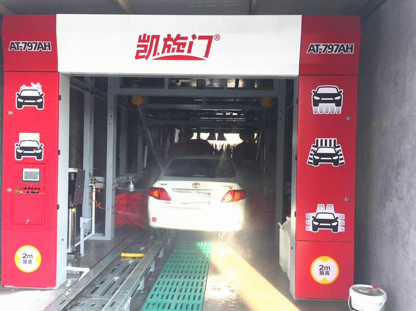 凯旋门隧道式全自动电脑洗车机的洗车原理是将车停在传送带上,由传送带带动车子从洗车房的入口进,出口出,完成洗车指令。(设备不动,车动)特点是外形美观大方,洗车速度快,适合洗车业务量大,经营场地具有相当规模的经营者。