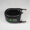 套管式蒸发器的结构与套管式冷凝器相同,由外管和内管构成,并盘成圆圈和半圆圈,液体制冷剂在内管内部沸腾吸热后变成高流速气体,将混于其中的润滑油带回压缩机。冷却水在水泵的作用下,在套管间流动冷却。