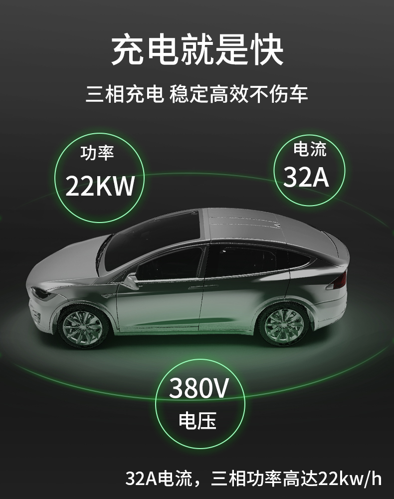 普通家用充电桩,是单相交流充电桩,大只能达到7kw;而三相交流充电桩,大可达到22kw,充电速度提升3倍,充电时间缩短1/3