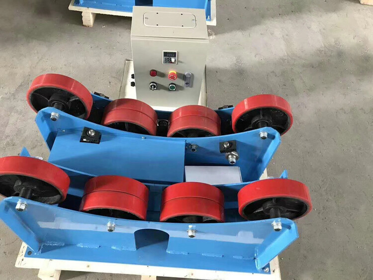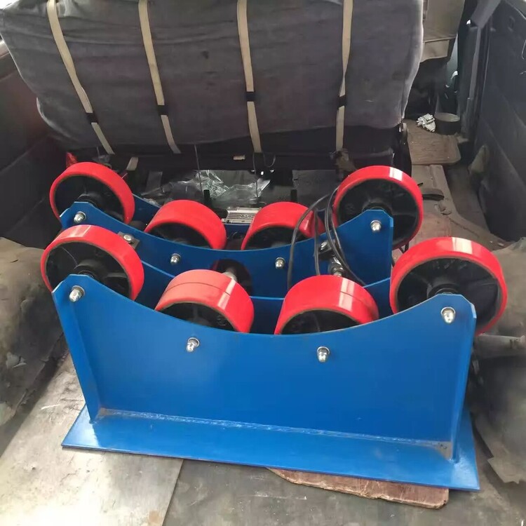 (1)滚轮架靠滚轮对的自由摆动,在规定的范围内自动调节滚轮中心距,适用不同直径的焊件,圆简体焊件放置平稳;